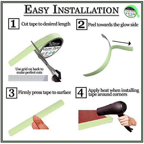 - ✔️ MADE FROM ECO-FRIENDLY MATERIALS • Made from a pliable photoluminescent non-toxic PET (vinyl feel to it) material that is safe for your children and pets • Simply cut the tape to a desired length strip, remove the white backing by peeling towards the glowing side, and stick to the surface **See the easy installation and removal guide