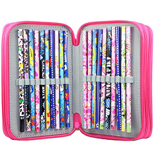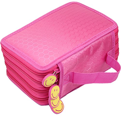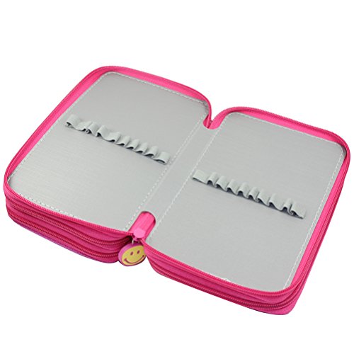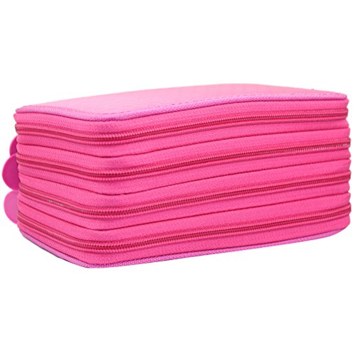 Youngman 72 Insertings Super Large Capacity Multi-layer Students Pencil Case Pen Bag Pouch Stationary Case Makeup Cosmetic Case Bag (Hot Pink)