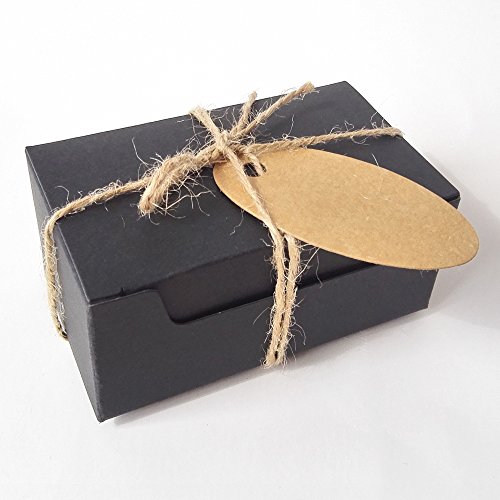 Gold-Furtune 50PCS Rectangle Gift Wrapping Kraft Paper Box With Tags & Hemp Rope Cardboard Paper Soap Box (Black Box With Brown Tags)