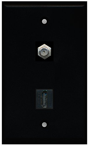 RiteAV - Black 1 Port HDMI 1 Port Coax Cable TV- F-Type Wall Plate