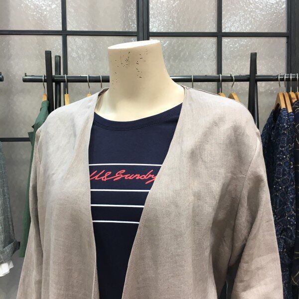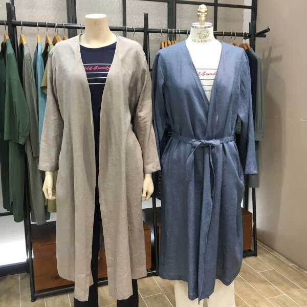 숄 가디건 느낌의 로브스타일! 블라우스 입니다. 하나만 툭 걸쳤는데 시크하고 네츄럴하고 꾸민듯 안꾸민듯 그 느낌이 드는 아이에요^^ 기장감이 롱하고 품이 여유있고 팔통도 여유있는 스타일로 전체적으로 방방하고 사이즈가 여유있는데요. 한여름까지 가능해요. 물론 개인차는 있지만 저 처럼 민소매와 코디하시면 가능하구요~ 린넨 100%소재라 면 소재랑은 다르게 살에 끈적이게 달라붙지 않아서 참 좋습니다 ! 컬러도 깔끔한 라이트그레이,미디엄블루 두컬러라 반사판 효과처럼 얼굴이 환해보이고 시원해보이는 효과를 줍니다~ 허리끈 탈부착으로 다양하게 연출하실 수 있으며 노출있는 옷에 커버업으로도 착용이 가능합니다 ^^총장길이는 55사이즈 기준으로 105.5cm 입니다.