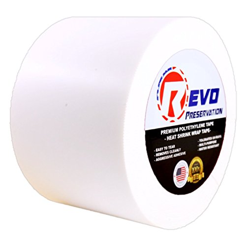 REVO Preservation Tape / Heat Shrink Wrap Tape (4" x 60 yards) MADE IN USA (WHITE) Poly Tape - Electrical Tape - Boat Storage Tape (PINKED EDGE) SINGLE ROLL (HEAVY DUTY: 9 MIL THICKNESS)