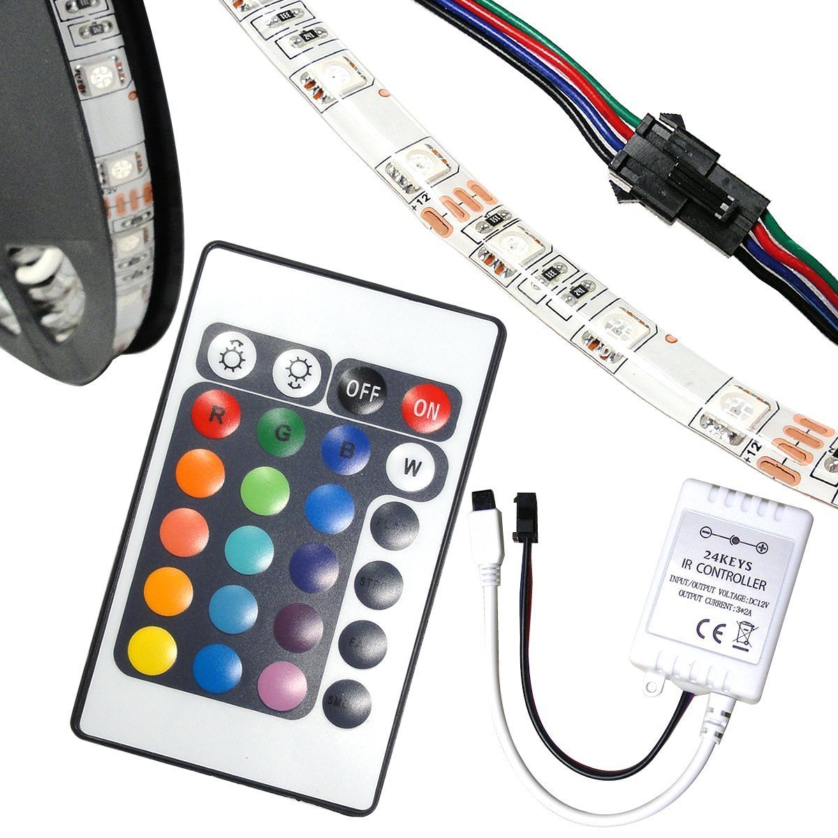 Pre-cut (1.5mx2 + 1mx2 + extension cord 1.5mx4) total extension 11m 300 series LED tape 16-color RGB under light