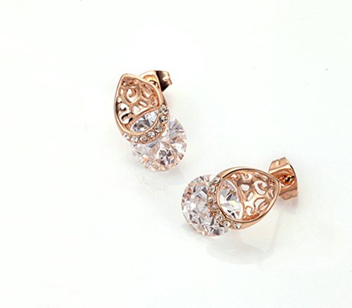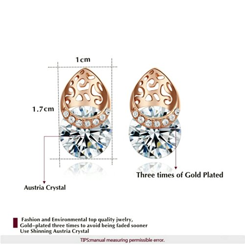 - Feature : The earring is composed of two parts, teardrop shaped hollow out 18k rose gold plated part and beautifully crafted cubic zirconia shining with grace. / A perfect fashion accessory to complement your wardrobe or as an appropriate gift used in wedding and engagement party or other occasions. / The earring size is 0.7''*0.4''. / Shipped out in an exquisite jewelry gift box. Delivery time 7-15 days. / One year warranty to ensure you a perfect shopping experience.