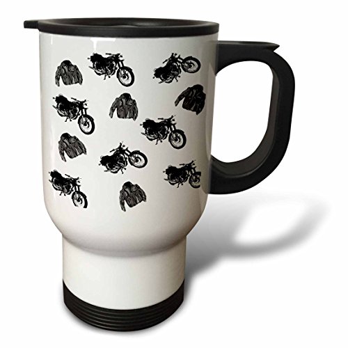 3dRose tm_221641_1 Print of Motorcycle and Leather Jacket Repeat Pattern Travel Mug, 14 oz, White