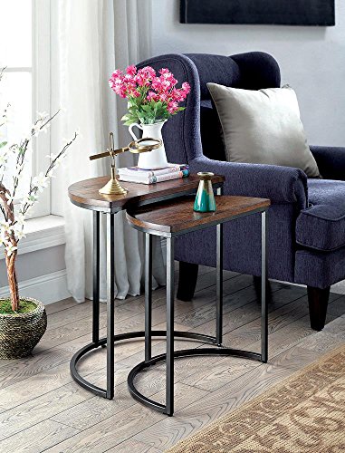 -. Brand : FA Furnishing -. Color : Medium Oak -. EAN : 0647732227581 -. Feature : Order Include: Nesting Table / -Order may not include all items in images- / 2 Nesting Table Set / Metal Frame with Wooden Top / Half-Moon Shape -. Label : FA Furnishing -. Manufacturer : FA Furnishing -. PackageQuantity : 1 -. ProductGroup : Furniture -. ProductTypeName : HOME_FURNITURE_AND_DECOR -. Publisher : FA Furnishing -. Studio : FA Furnishing -. Title : Bigland Industrial Metal Nesting Table in Medium Oak -. UPC : 647732227581 -. Warranty : 1 Year Manufacture Limited Warranty