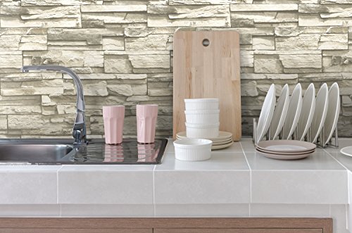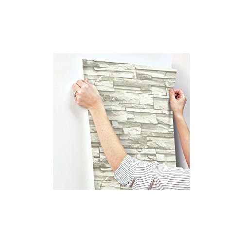 RoomMates RMK9026WP Natural Stacked Stone Peel and Stick Wallpaper Décor