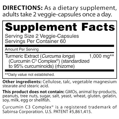 -. Title : NuTherapy Turmeric Extract (Curcumin C³ Complex) Std. to 95% Curcuminoids, Joint & Inflammation Support; 1,000 mg 120 veggie capsules