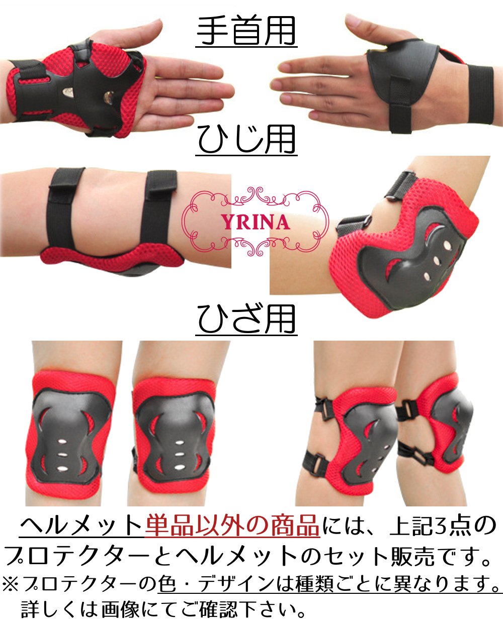 The protector will be black, blue and pink according to the color of the helmet, it is a set of 3 points of elbows, knees, wrists.