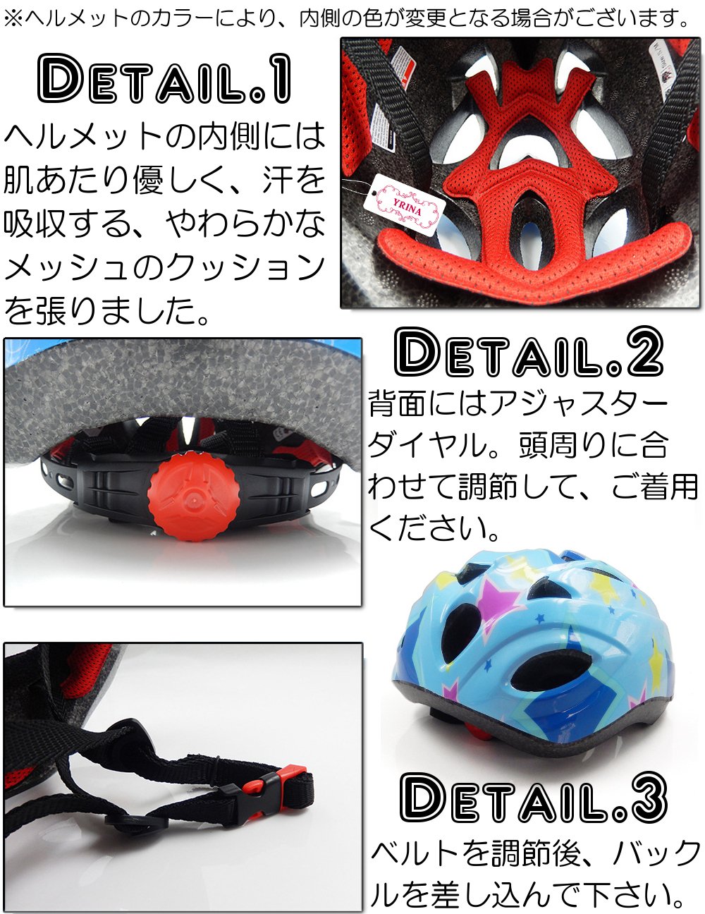 The cushioning material is adopted for the head circumference of the helmet.