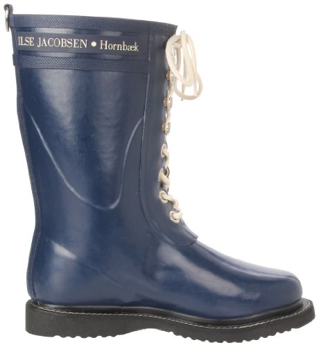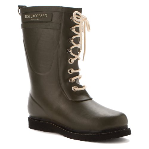 FEATURES of the Ilse Jacobsen Women's Rub15 Boot Handmade mid height, laced, and fleece lined boot with stitched down soles Made with 100% pure natural rubber Provides complete waterproof protection in rain and snowy weather Soft cotton fleece lining for great warmth and comfort Keeps feet warm and dry in any temperature Offers all day comfort without foot perspiration Performs for casual wear and outdoor activities, in both urban and rugged outdoor setting