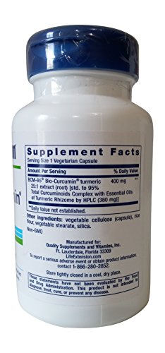 Studio : Life Extension Foundation Publisher : Life Extension Foundation Binding : Health and Beauty Product Description Super Bio-Curcumin® 400 mg 60 vegetarian capsules Item Catalog Number: 00407 Curcumin is impressing scientists around the world with its remarkable multiple health benefits. Curcumin is a polyphenol present in the spice turmeric and was first used by Indians over 3,000 years ago in traditional Ayurvedic medicine. Modern science has found that curcumin has remarkable health benefits for nearly every organ system in the body13-18 ... including its ability to inhibit enzymes that help produce inflammation in the body.19 Studies have tied inflammation to overexpression of a protein molecule called nuclear factor-kappa B (NF-kappaB). NF-kappaB acts like a switch to turn on genes that produce the body's inflammatory responses. Because NF-kappaB's expression increases in aging adults, scientists have sought ways to modulate NF-kappaB and its effects in the body. Other clinical trials suggest roles for curcumin in helping maintain healthy bowel and joint functions.28-36 Curcumin can also help maintain normal healthy platelet function,37-40 and have immunomodulatory effects by inhibiting histamine release from mast cells.41-43 Other studies show curcumin's potential for supporting healthy brain function and offering neuroprotection.44-53 Each 400 mg capsule of Super Bio-Curcumin® is equivalent to 2,772 mg of a typical 95% curcumin extract. 0