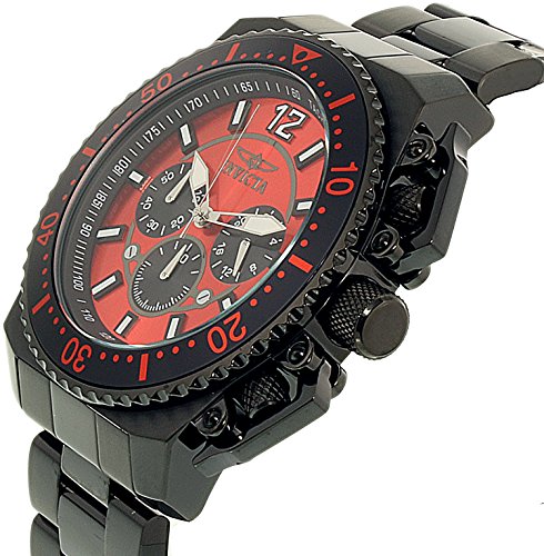 -. Title : Invicta Men's Pro Diver Black Steel Bracelet & Case Quartz Red Dial Analog Watch 21958