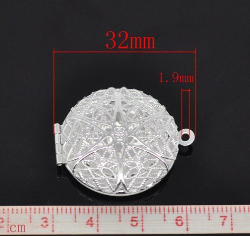 5 Silver Plated Round Photo Locket Charm Pendant Filigree