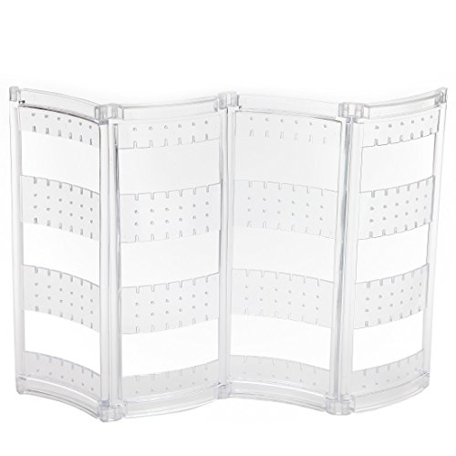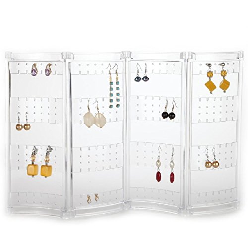 - Folding, four-panel earring screen holds all styles of pierced and clip earrings.