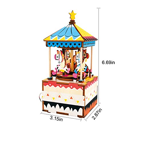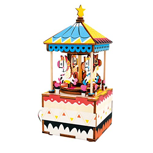 Ccassie 3D Puzzle Wooden DIY Clockwork Music Box Kids Toys Christmas Gift(Carousel)