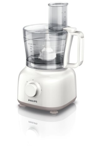 -. Feature : Diese Philips Küchenmaschine aus der Daily Collection im kompakten Design enthält eine 2,1 L (nutzbare kapazität 1,5L) Schüssel und verschiedene leistungsstarke Zubehörteile. Köstliches selbstgemachtes Essen zuzubereiten war nie so einfach! / 2 Geschwindigkeitsstufen: 1) zum Schlagen von Sahne, Verquirlen von Eiern und zum Zubereiten von Pasteten- und Brotteig, 2) eignet sich zum Zerkleinern, zum Zubereiten von Suppen und Smoothies oder zum Schneiden, Raspeln und Reiben von Gemüse. / Die Küchenmaschine aus der Philips Daily-Kollektion besitzt eine Einfüllöffnung, die um 40 % größer als das frühere Modell HR7625 ist, was Ihnen Zeit beim Zerkleinern von Obst und Gemüse spart. / Die genutzte PowerChop-Technologie ist eine Kombination aus Klingenform, Schneidewinkel und Innenbehälter, die eine optimale Leistung beim Zerkleinern von weichen und harten Lebensmitteln ermöglicht. / Lieferumfang: Küchenmaschine, 3 Schneideeinsätze, Knethaken, Schneidemesser, Garantiekarte, Bedienungsanleitung