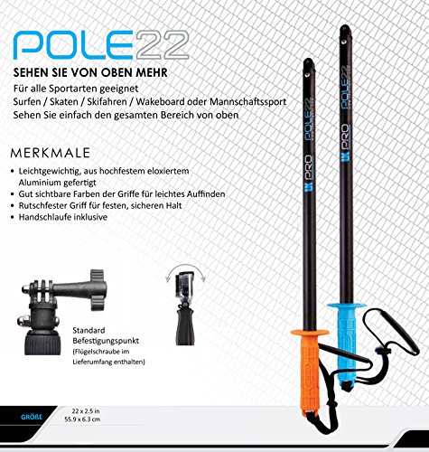 Stop sabotaging old ski poles and broom handles in your efforts to find the perfect pole mount for your GoPro and get the UK Pro POV 22in Camera Pole instead. The lightweight aluminum handle won't tire out your arm after one run, and the rubber grip provides a solid hold so you don't drop it when things get intense. At twenty-two inches, it's not too short to be able to see everything when you're filming yourself or too long to be stable when you're doing a follow-cam shot of your buddy.Feature
