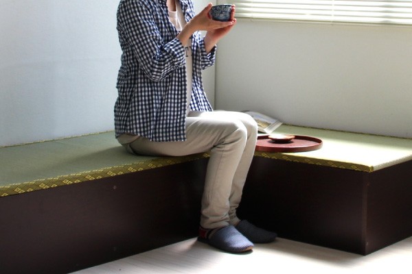 ■膝に負担のかからない高さが31cmのユニットボックスに畳マットが載っています 。