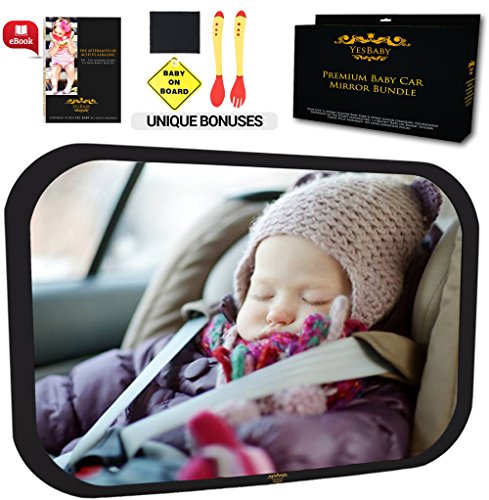 -. Feature : Why the Best Baby Car Mirror Bundle with LIFETIME WARRANTY? Because your baby smiles is worth it! The Yes Baby Car Mirror for your vehicle's headrest (designed to keep an eye on your baby in the rear-facing car seat) + A UNIQUE silicone Baby Fork & Spoon (color changing technology depending on the food's temperature) + a REFLECTIVE 'Baby on Board' Sticker + a Complete Digital Guide - The Aftermath of Acid vs Alkaline - PH - The Ignored Secret to Your Baby's Health! / THE SAFEST BABY CAR MIRROR EVER: What is more important than your INFANTS SAFETY? We are not only experts in designs and manufacture, we are expert parents too. Only after it has undergone extensive visual and technical inspection by our specialists, the back seat car mirror received the Safest Selection certificate, because is made from the MOST STUDIED AND IMPROVED SHATTERPROOF GLASS and a SUPER SECURE STRAP SYSTEM. / Our concept is PERFECTION AND QUALITY! Compared with the others mirrors, by integrating the latest technology, The Yes Baby offers premium viewing experience through the CONVEX mirror. Let yourself be fascinated by sensational RESISTANCE of the PIVOT JOINT that is STRONG and rotates perfectly to 360ᵒ degrees allowing you to see your baby in the back seat through our rear facing mirror. / SAVE TIME-COMES FULLY ASSEMBLED - So you never miss a detail! NO extra annoying pieces. Super Secure Strap System is easy to assemble to your back seat vehicle's headrest, offering STABILITY and SAFETY. The Yes Baby in-sight mirror is ADJUSTABLE and will stay in place providing a CRYSTAL CLEAR FACING VIEW of your baby without needing to readjust the mirror. / BUY WITH CONFIDENCE: As this is backed by LIFETIME GUARANTEE, 100% Satisfaction Warranty!