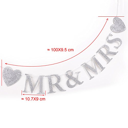 - Feature : Beautiful vintage style "MR &MRS" Garland in Shiny Silver glitter Version! / Easily displayed using the eyelets at either end.Fantastic for in the garden as well as indoors. / Would make a great wedding gift to have at the reception.Can be used as a banner or table top decoration. / The string is 1M long.
