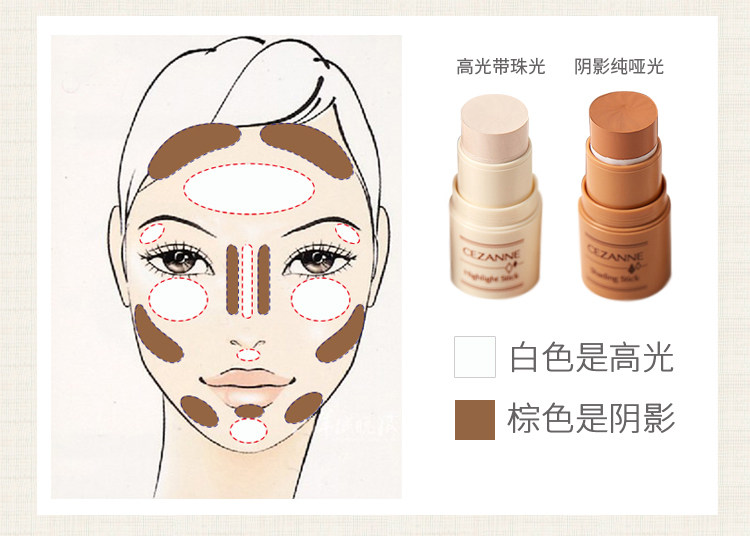 阴影棒是纯哑光的,颜色偏黄褐色,很自然,适合亚洲人的皮肤,连不怎么会画阴影的美眉都不怕