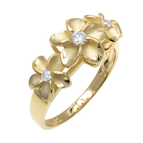 -. Binding : Jewelry -. Brand : Honolulu Jewelry Company -. Department : womens -. Feature : Plumeria Represents Perfection And The Bond Between Everything Good / Cubic Zirconia Adds Additional Sparkle / Stylish & Great for Everyday Wear / A Lovely Gift from the Hawaiian Islands / From Honolulu Jewelry Company, Honolulu, Hawaii -. Label : Honolulu Jewelry Company -. Manufacturer : Honolulu Jewelry Company -. Model : SR3375YG -. ProductGroup : Jewelry -. ProductTypeName : FASHIONRING -. Publisher : Honolulu Jewelry Company -. Studio : Honolulu Jewelry Company -. Title : Three Plumeria Ring with 14K Gold Finish over Sterling Silver