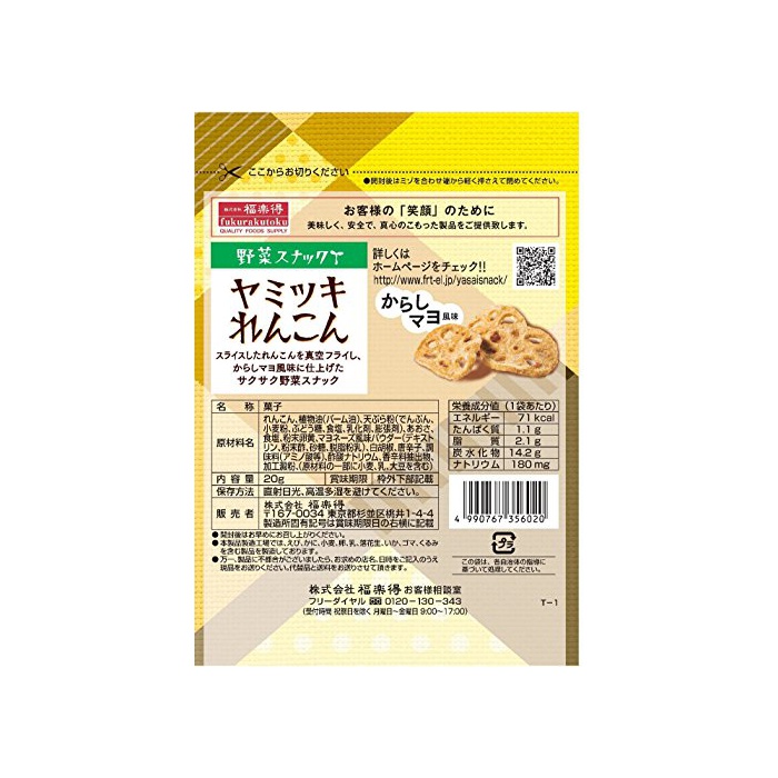 원본상품명: 福?得 野菜チップスヤミツキれんこん 20g×5袋