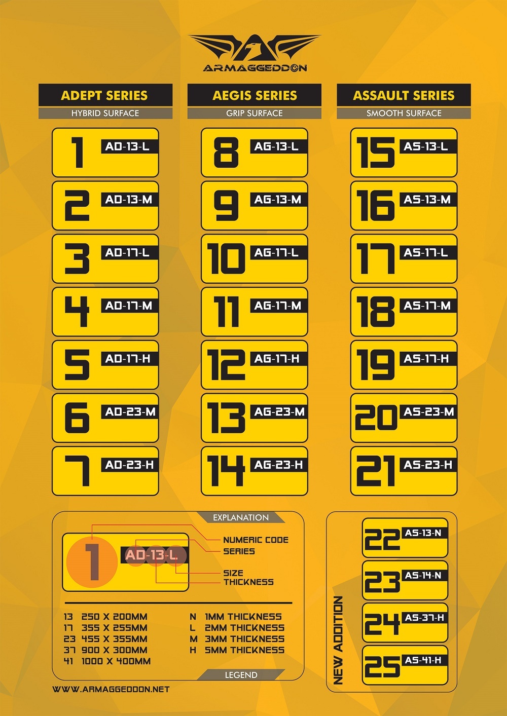 The Aegis series of Armaggeddon mousemats, feature the roughest glide, with the best control. The improved tracking due to the textured surface as well as a constant level of friction, allows for greater control. Highly recommended for FPS gamers. It is recommended to use the Aegis mouesmat, with a mouse that has ceramic mousefeet, as Teflon would be subjected to quick wear and tear