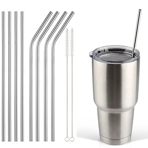 -. Feature : Dishwasher safe, modern, sleek design adds class & fun when drinking water, coffee, tea, and shakes, maintaining the temperature of whatever it is you are drinking, makes the drink colder just by sitting in the ice / Length: 10.5 inch, OD:0.24 inch, straight, same as normal disposable-drinking-straws. Perfect for 30 oz YETI cups, a bit long for 20 oz ones / Reusable, environmental friendly, plastic free, BPA free and lead free, no metal aftertaste, won't creep out of the glass like plastic straws do, not having to waste plastic daily / Straws For Halloween Unbreakable, rust-proof, scratch-proof and break-proof 18/8 stainless steel / CUPS NOT INCLUDED! 2 bonus cleaning brushes included