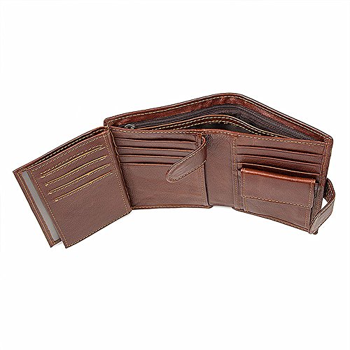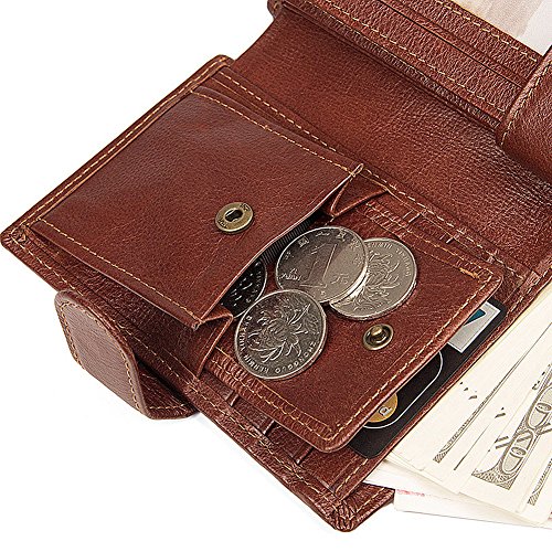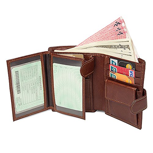 -. Feature : 【GENUINE LEATHER】:Precious Italian Vegetable Tanned Cowhide Leather with nice and smooth texture, really soft & comfortable to touch. Vegetable tanned Leather is a luxury leather. It uses natural ingredients instead of chemicals, so it is environmentally friendly. / 【LARGE CAPACITY】:3 ID windows (DL & Other ID Cards) allow for quick access when traveling or at the store /work place / airport...etc. With 11 card slots & 2 currency pockets & 1 zipper pocket & 1 coins pocket, it's easy to carry all your important cards and banknote, meet all your daily needs. / 【COMPACT DESIGN】:Our genius designers did all they could, making this trifold wallet slim & compact enough but at the same time very containable, superb for travel, and everyday use, keeping cards safe and organized! Wallet size is 4" x 5.3''x 0.3" (folded, empty). / 【RFID BLOCKING SECURITY】:We leverage top RFID technology to block RFID signals used to electronically scan your wallet as someone passes by unnoticed. This keeps your vital information in driver license, debit cards and credit cards from being stolen. / 【SATISFACTION GUARANTEE】:If you are not completely happy with our RFID wallet, simply return it within 30 days for a full refund or replacement, we back up our product.