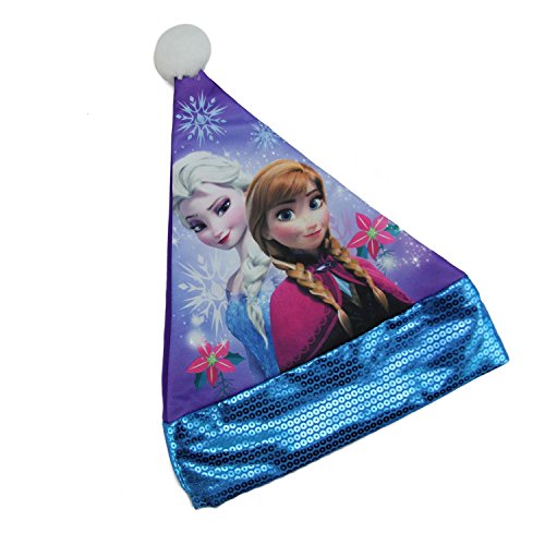 Studio : Disney Publisher : Disney Binding : Toy Product Description Officially licensed merchandise This Santa hat features Elsa and Anna from Disney's Frozen ready to celebrate the holidays with you and your family Shiny blue cuff and white pompom on top Care instructions: spot clean only One size fits most children Overall dimensions: 15" high x 11.25" diameter Brim size: 22.5" Material(s): fabric 0