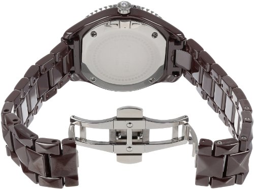 -. Feature : Brown ceramic pyramid cut bracelet / Precise Swiss quartz movement. Center of the dial is adorned with crystals / Brown ceramic case with a stainless steel bezel / Glossy brown dial with silver-tone hour markers / Not water resistant