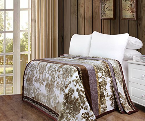 Features a lovely bold chocolate brown border all around the blanket with a intricate horizontal floral design giving this blanket a unique look!