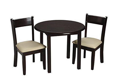 ReleaseDate : 2015-06-23 Studio : Gift Mark Publisher : Gift Mark Binding : Baby Product Product Description The Gift mark Round Espresso Stained Table and 2 Matching Upholstered Chair Sets, with Solid Wood Backs The Table is Made of Solid Wood. These Durable Table and Upholstered Chairs will add a touch of sophistication to any child's room or Play Room. Intended specifically for your Child. Children Play for Hours on end. Our Solid Wood Table and Chair Sets clean easily with any High Quality Furniture Polish. All Materials are BPA Free and Phthalate Free. All tools are Included for easy assembly. 0