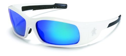 Crews SR128B Swagger Brash Look Polycarbonate Dual Lens Glasses with Polished White Frame and Blue Diamond Mirror Lens