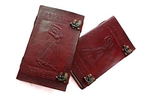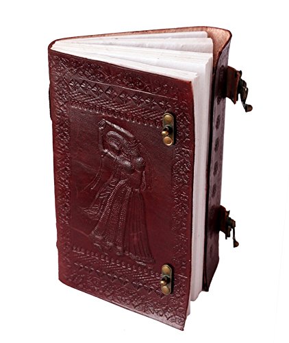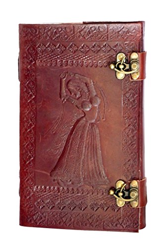 -. Feature : Genuine Leather Journal for use as Personal Diary, Scrapbook, Photo Album, Ledger, etc / Height 9 inches ,width 5 inches / 200 pages (counting both sides) / Embossed Dancing Women on front cover with 2 brass lock / Handcrafted from Eco-Friendly Leather With Recycled Paper