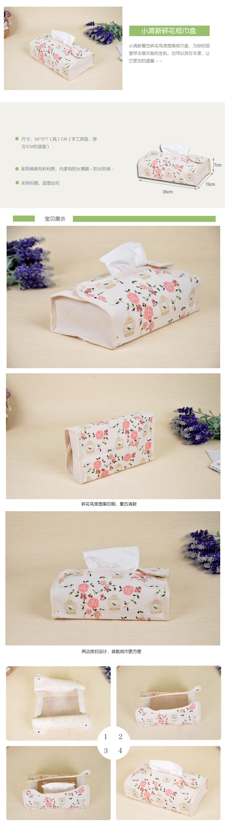 Tissue box size: 26cm * 15cm * 7cm (L * W * H)