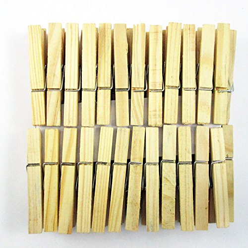 96 Count Traditional Wooden Spring Clothespins / Laundry Clips –Steel Springs (96)