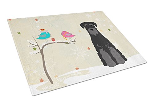 Caroline's Treasures BB2504LCB Christmas Presents Between Friends Standard Schnauzer Black Glass Cutting Board, Large, Multicolor
