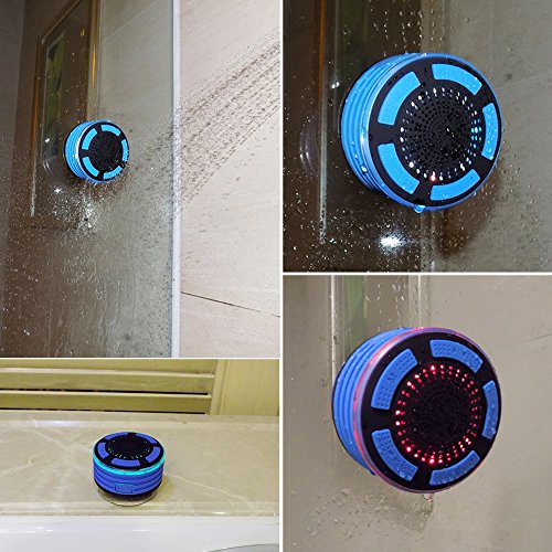 UNIQUE COLORFUL LIGHTS: Four colors LED lights varied when the speaker is on, creating a dynamic and romantic music ambience, excellent for party, dating and dancing time. As a beautiful shower speaker, it would be a wonderful Festival Gift for your beloved ones!