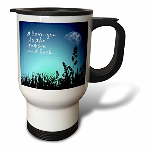 3dRose tm_220301_1 Beautiful Blue Night Scene I Love You to The Moon and Back Travel Mug, 14 oz, Stainless Steel, White
