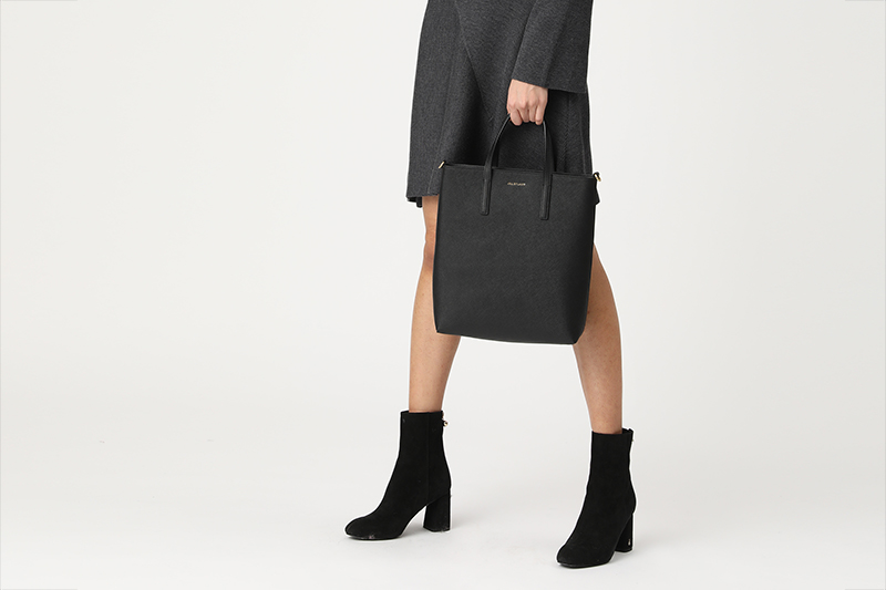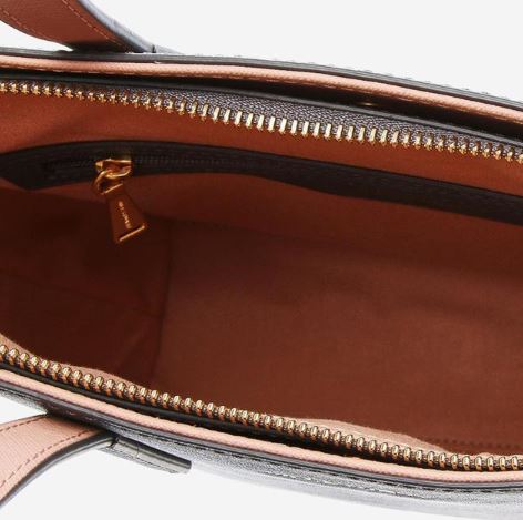 군더더기 없는 깔끔한 디자인에 골드 컬러의 로고 장식으로 포인트를 준 토트백으로, 내부 배색포인트로 세련된 외관을 연출하였습니다.