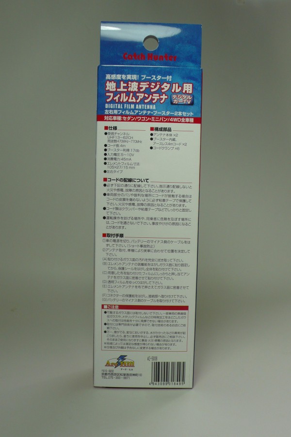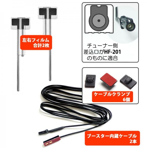 | セット内容 | 左右用フィルムアンテナ×2本 ブースター内蔵ケーブル(HF-201端子)×2本 ケーブルクランプ×6個 取扱説明書 |