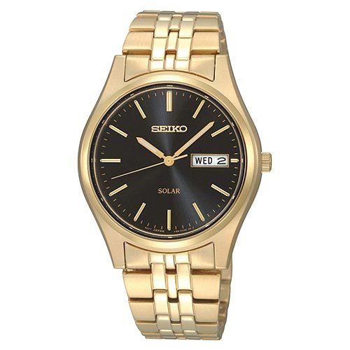 원본상품명: Seiko Mens SNE044 Gold Tone Solar Black Dial Watch【?行輸入】