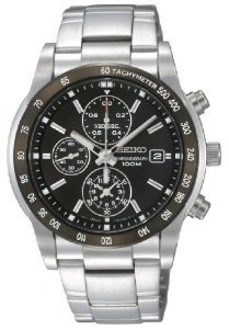 블랙 다이얼과 세이코 맨즈SNDC99실버 스테인레스 스틸 쿼츠 시계.