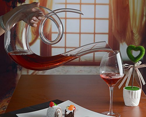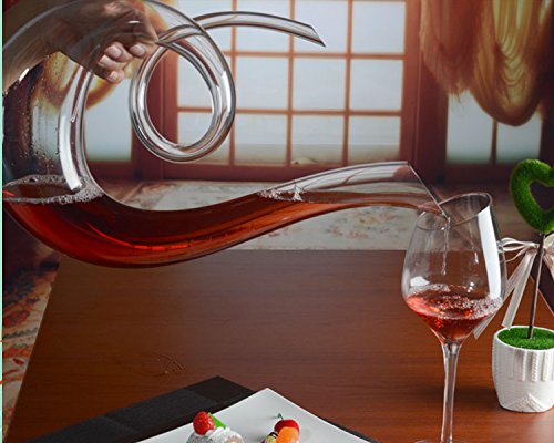 -. Feature : Capacity: 53 oz (1580ML) High: 41CM / width: 23CM / Lead free crystal adds clarity and brilliance / Unique Music notation shape and sleekly elegant curves , easy to pour / awaken your wine,Improve the quality of your wine,It makes wine taste extraordinary . / we strive for perfection, but it is unavoidable & normal with very small air bubbles because it is totally handmade