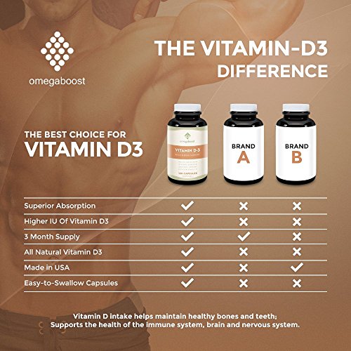 Omegaboost Vitamin D3 120 capsules comes with 5,000 IU of vitamin d3 for a 3 month supply!