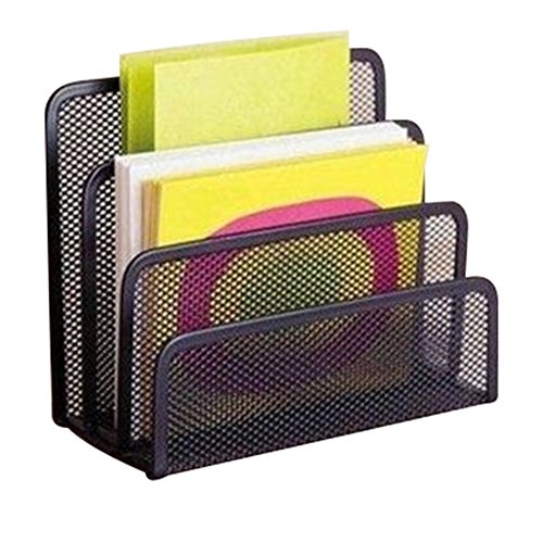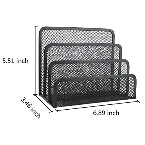 Frjjthchy 2 Pcs Mesh Letter Holder 3 Section Collection Desk Organizer Black