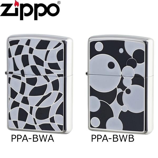 白と黒を基調にシンプルな幾何学模様のデザインをプリントした、アーティスティックな雰囲気が漂うZIPPOです。 |